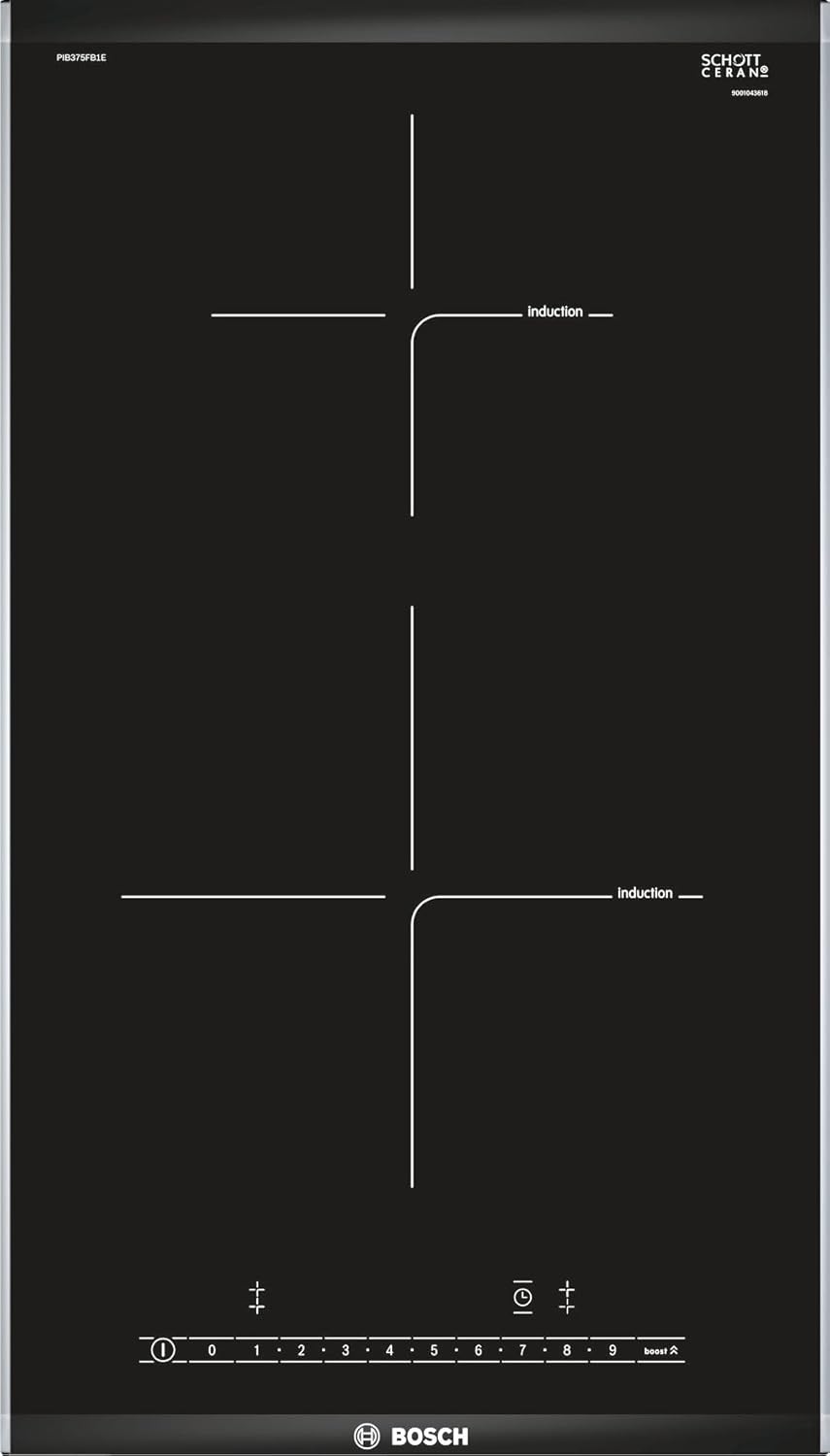 Bosch PXX375FB1E, Serie 6, Domino - Kochfeld, Einbau, 30 cm, Flex - Induktion, Quick start, einfache Bedienung des Kochfeldes, DirectSelect, Power Boost, Re Start, Glaskeramik, Schwarz
