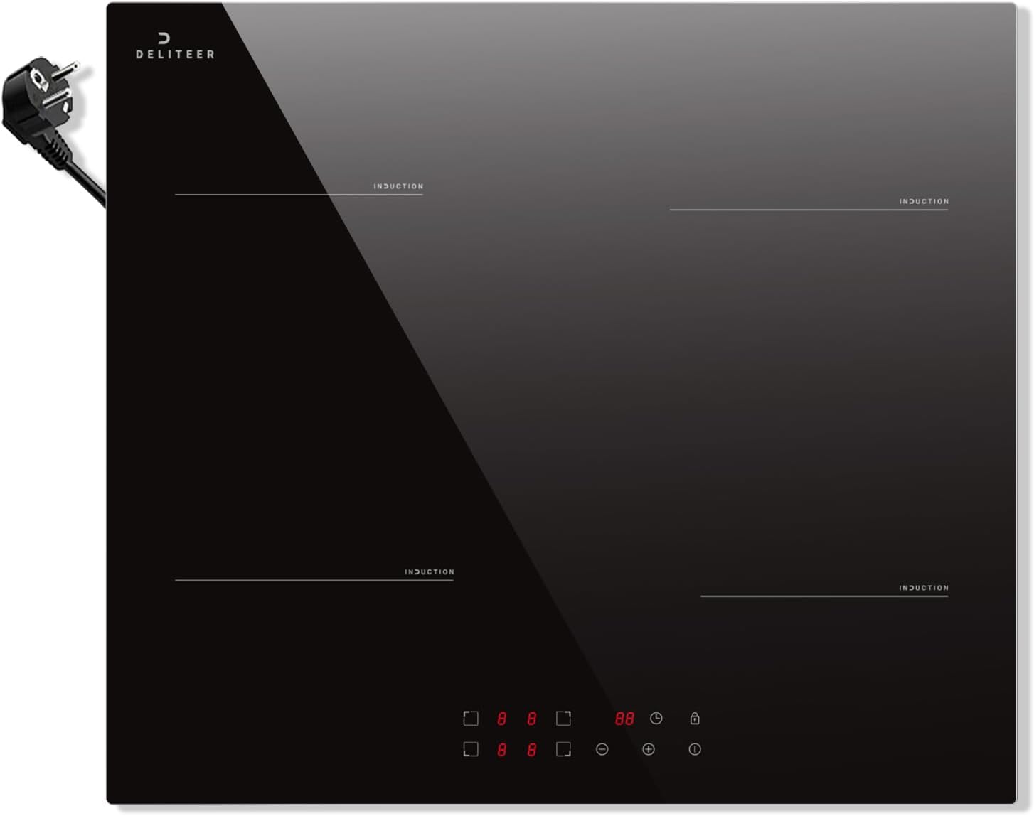 AMZCHEF Induktionskochfeld 60cm mit Flexzonen, 4 Zonen Induktionskochplatte mit Boost - Funktion und 9 Leistungsstufen, Pausenfunktion, Timer, Sicherheitsschloss, Überhitzungsschutz, BBQ, 7200W
