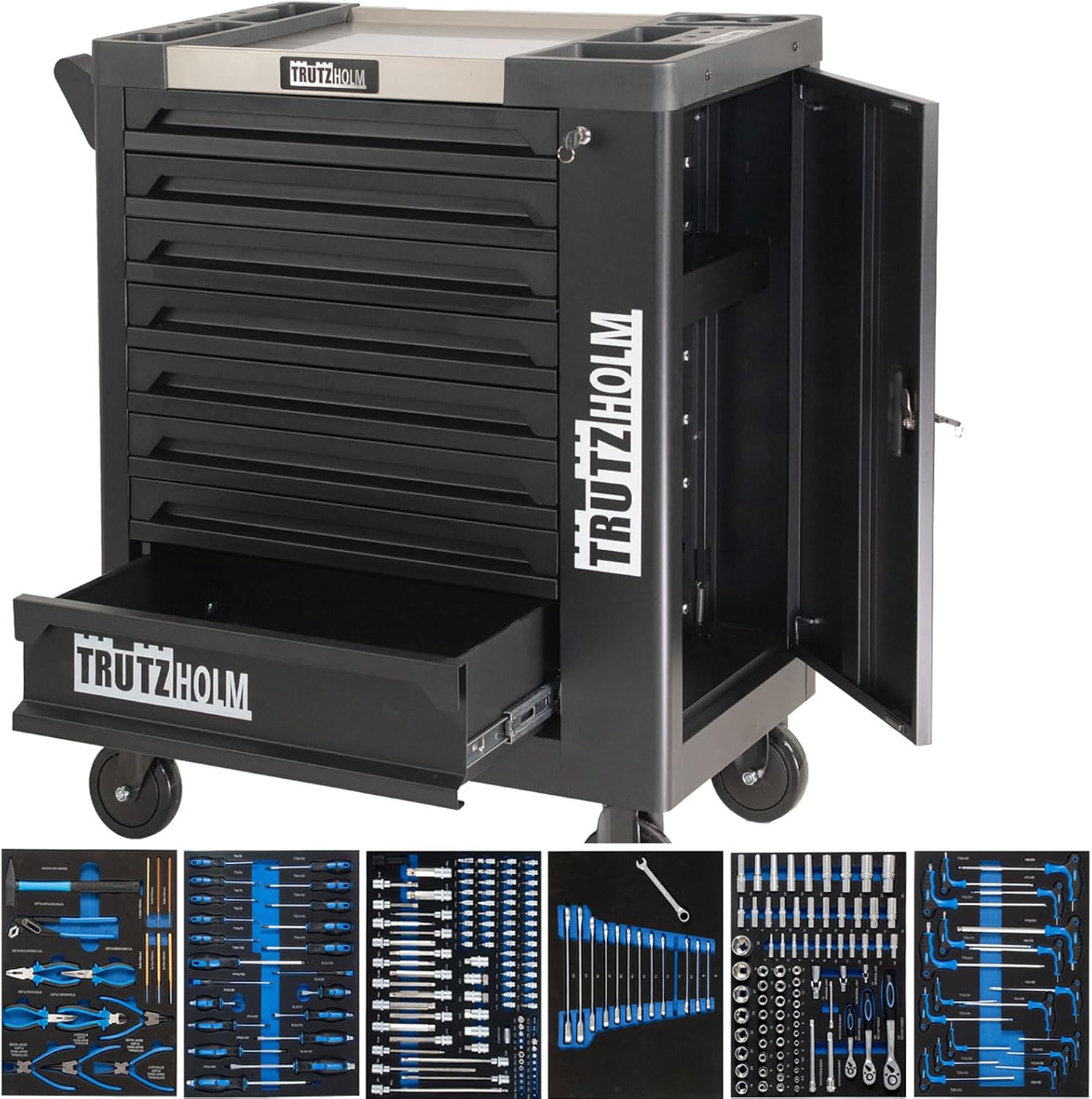 NTG Werkzeugwagen 7 Schubladen inkl. 290 - tlg. Werkzeug - Werkstattwagen mit Zentralverriegelung, abschließbar, mobil mit Rollen - Profi Werkzeugkoffer auf Rädern für Werkstatt und Garage