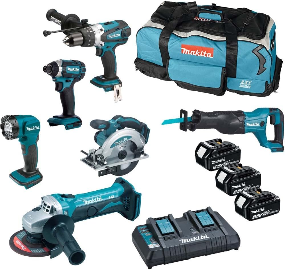 Makita DLX6104TX2 18V Li - Ion LXT 6 - teiliges Kombi - Kit komplett mit 3 x 5,0 Ah Akkus und Ladegerät mit zwei Anschlüssen, Lieferung in einer LXT Werkzeugtasche
