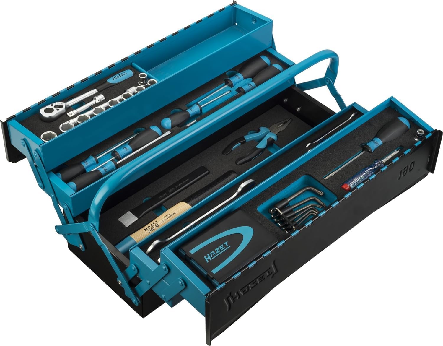 HAZET Metall - Werkzeugkoffer 190 79 I 79 - teilig, gefüllt mit Hammer, Umschaltknarre, Zange und Vorhängeschloss I mobiler Montagekoffer mit Profi - Sortiment